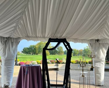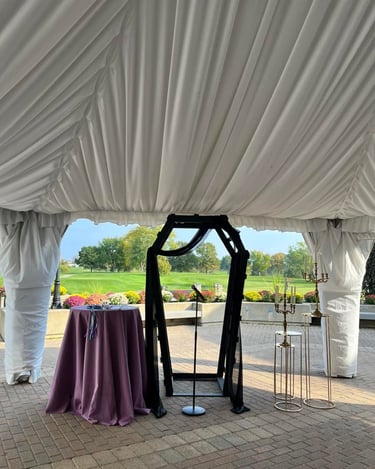 A unique backdrop moment for your spooky wedding vibes. This ceremony arch is made of durable wood and comes with black draping to complete the look.