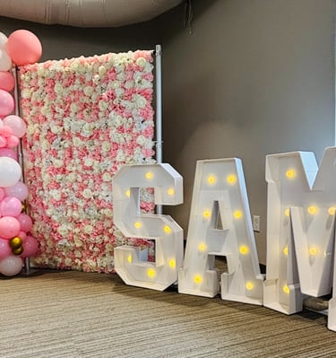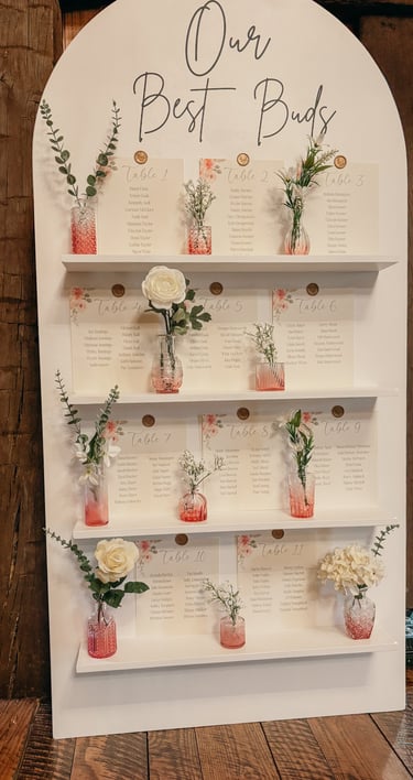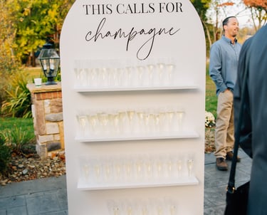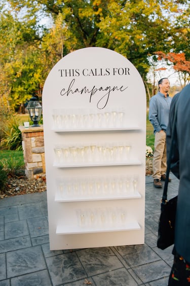 Our champagne wall adds a bubbly touch to weddings and bridal showers. It also makes a great display wall for your seating chart.