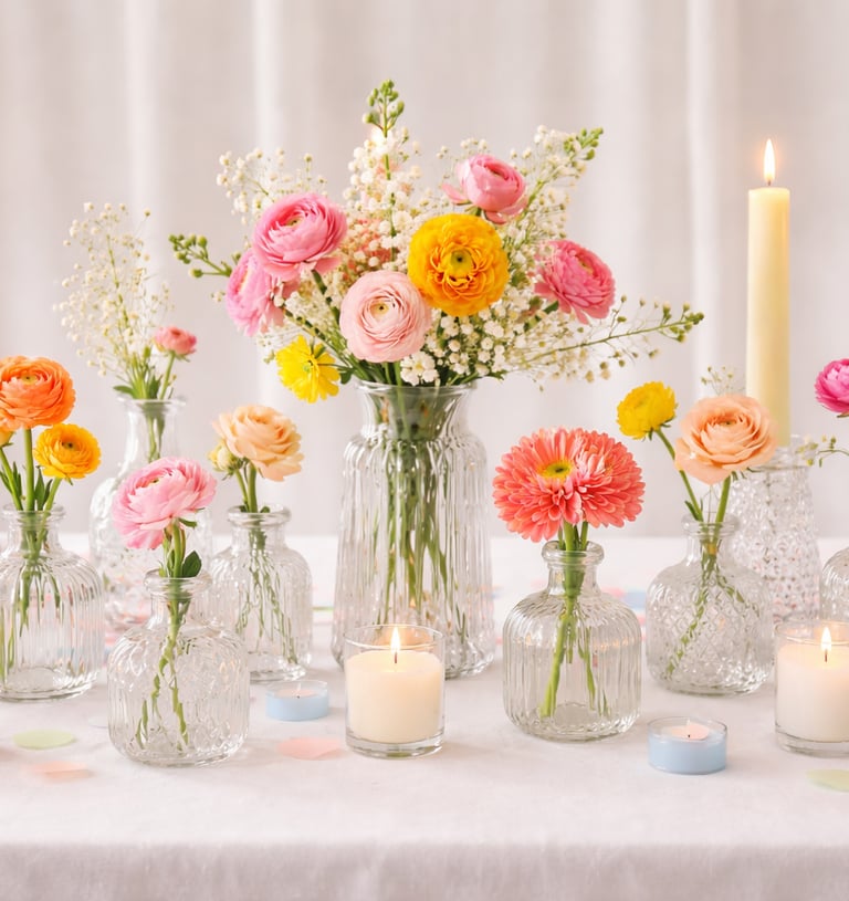 From bud vases to tall pillars, we have a variety of options for your table centerpieces.